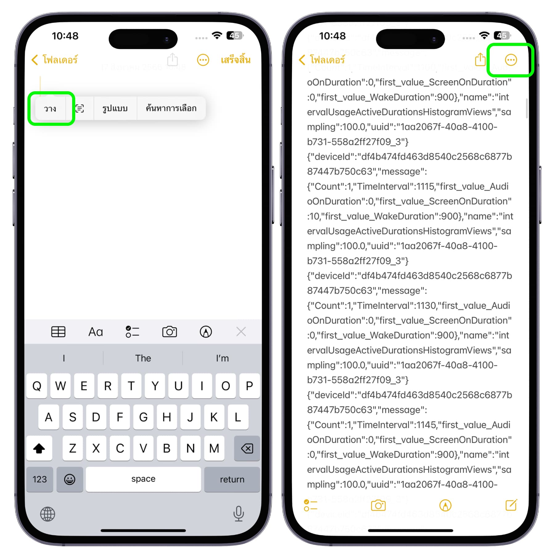 เมื่อคัดลอกมาแล้ว ให้นำสิ่งที่เราคัดลอกไปวางใน แอปโน้ต > พอวางเสร็จให้แตะไอคอน จุดสามจุด …