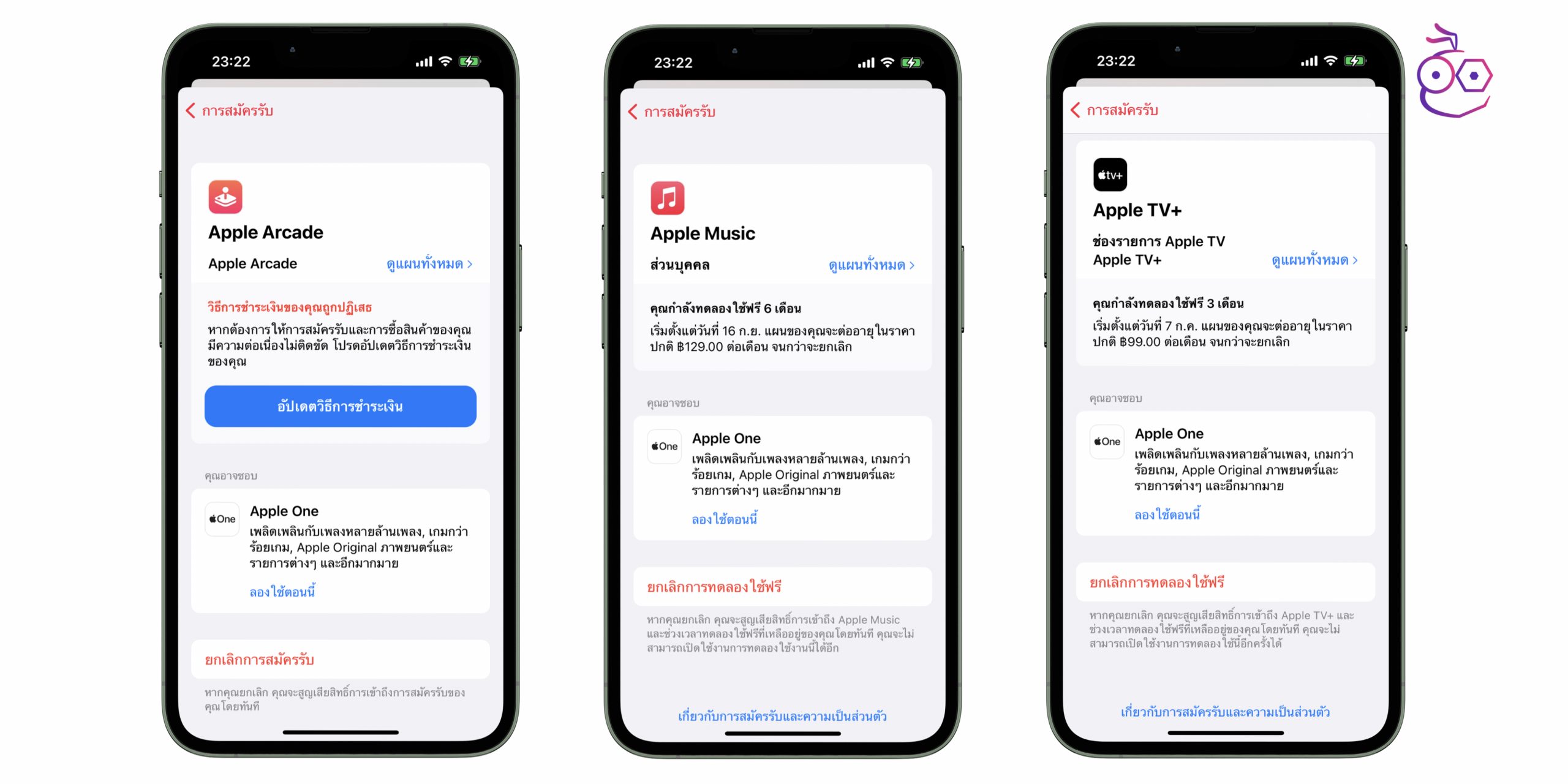 หลาย ๆ คนที่ซื้อ iPhone, iPad เครื่องใหม่ หรือใครที่ย้ายมาใช้ระบบ Ecosystem ของ Apple มักจะได้รับโปรโมชันในการทดลองใช้ Apple Music, Apple Arcade และ Apple TV+ ที่มีช่วงระยะเวลาในการทดลองใช้งานฟรี เช่น (Apple Music ทดลองใช้ฟรี 6 เดือน, Apple Arcade ทดลองใช้ฟรี 1 เดือน) หรือ สมัครรับพื้นที่จัดเก็บข้อมูลออนไลน์อย่าง iCould