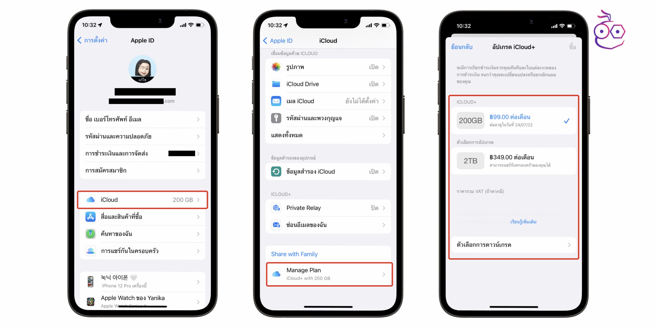 - จะแสดงวันหมดอายุของ iCould และตัวเลือกการอัปเกรด/ดาวน์เกรด