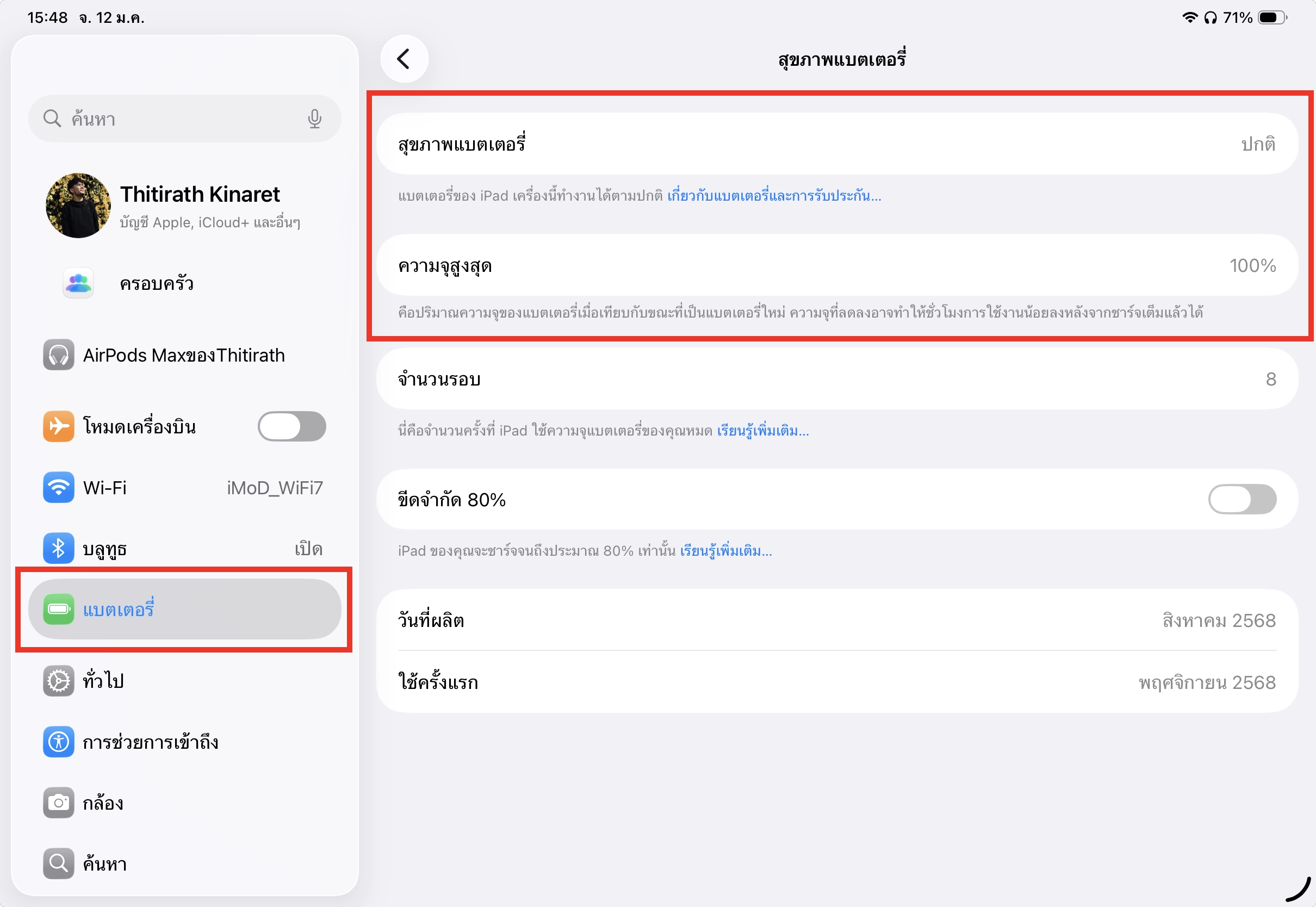 (หากสุขภาพแบต iPad น้อยกว่า 80% แนะนำให้เปลี่ยน)