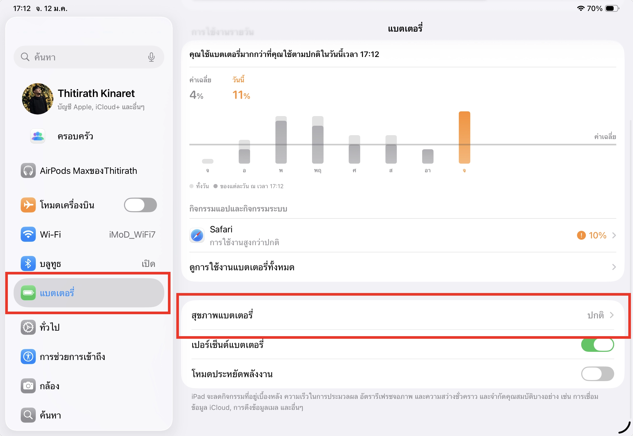 ระบบจะแสดงข้อมูลสุขภาพแบตตรงส่วน Battery Health