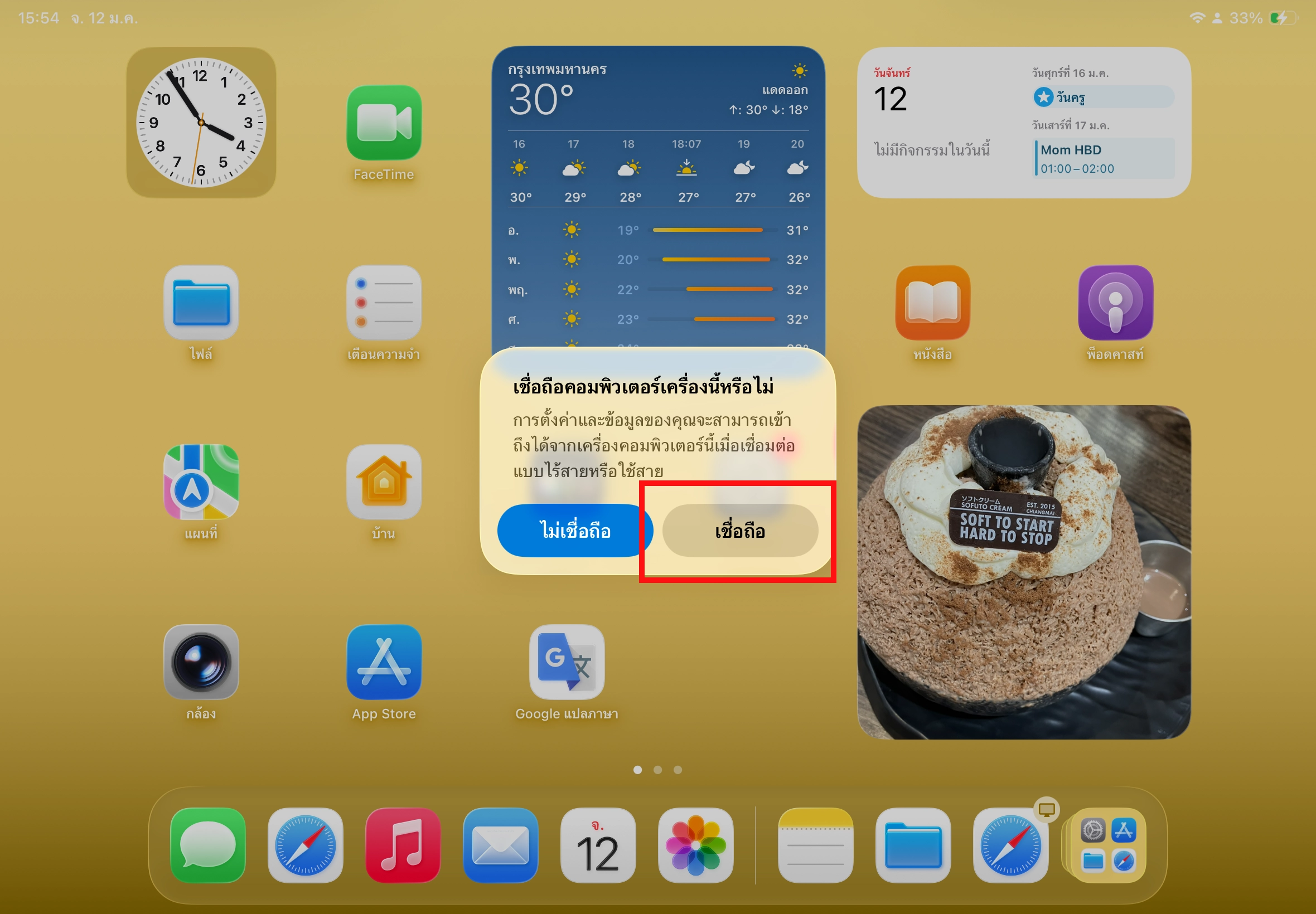 เชื่อมต่อ iPad เข้ากับ Mac > บน iPad ให้แตะ เชื่อถือ