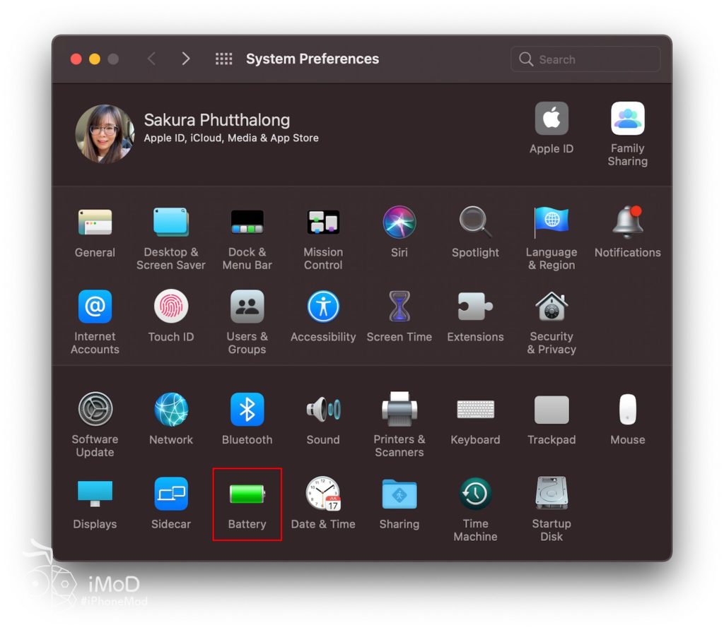 ไปที่ System Preferences > Battery