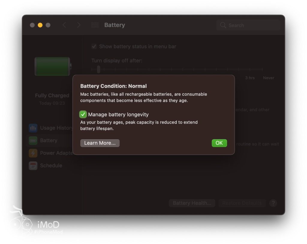 ในส่วนแถบอื่น ๆ ก็สามารถตั้งค่าที่เกี่ยวข้องกับแบตเตอรี่ได้ เช่น การตั้งค่าให้ไอคอนแบตเตอรี่แสดงบน Menu Bar, ระยะเวลาการดับหน้าจอลงเมื่อไม่ได้ใช้งานหน้าจอ, การตั้งค่าเปิดใช้งานการจัดการสุขภาพแบตเตอรี่ (Battery Health Management), การเปิดใช้งานการชาร์จเพื่อถนอมแบตเตอรี่ และอื่น ๆ แนะนำให้ตั้งค่าให้เหมาะสมกับการใช้งานนะคะ