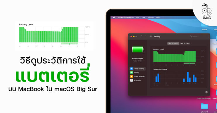 ใน macOS Big Sur ได้เพิ่มกราฟแสดงการใช้งานและการชาร์จแบตเตอรี่ MacBook ซึ่งข้อมูลเหล่านี้จะช่วยให้เราเห็นได้ว่าแบตเตอรี่ลดลงไวผิดปกติหรือไม่หรือมีปัญหาในการชาร์จ เรามาชมกันว่าสามารถดูประวัติการใช้งานแบตเตอรี่ได้ที่ไหนและกราฟที่แสดงนั้นมีความหมายอย่างไรบ้าง