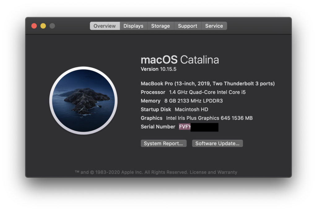 Apple > About This Mac ดูในส่วน Overview เราจะเห็น Serial Number ให้คัดลอกไว้