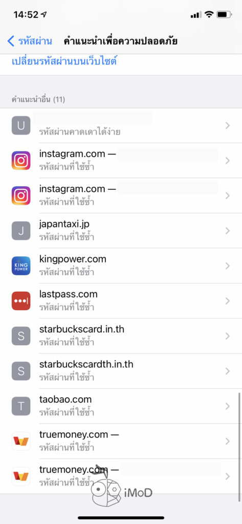 ใครที่เก็บรหัสผ่านไว้ในส่วน iCloud Keychain บน iPhone ก็สามารถเข้าไปตรวจเช็คความปลอดภัยของรหัสผ่านกันได้เลยนะคะ หากรหัสผ่านอยู่ในข่ายที่มีความเสี่ยงไม่ปลอดภัย ก็ให้เข้าไปเปลี่ยนรหัสผ่านโดยด่วน อาจจะใช้รหัสผ่านที่ iPhone แนะนำ เพื่อการคาดเดาที่ยากขึ้น