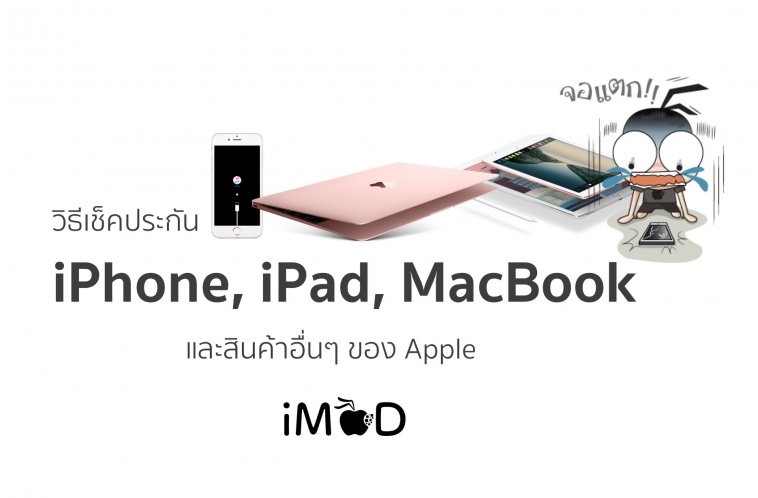 Update 1: วิธีการเช็คประกันสินค้า Apple ไม่ว่าจะ iPhone, iPad, iPod touch, Mac และ Apple TV วันนี้ง่ายสุดเพียงติดตั้งแอปที่ชื่อว่า Apple Support ดาวน์โหลดที่ App Store จากนั้นเข้าระบบด้วย Apple ID เพียงเท่านี้ก็ดูประกันของอุปกรณ์ทั้งหมดได้เลย ชมวิธีการได้ที่ วิธีตรวจสอบการรับประกัน iPhone, iPad, Mac และ Apple Watch ง่ายๆ บนแอป Apple Support โดยไม่ต้องกรอกเลข Serial Number