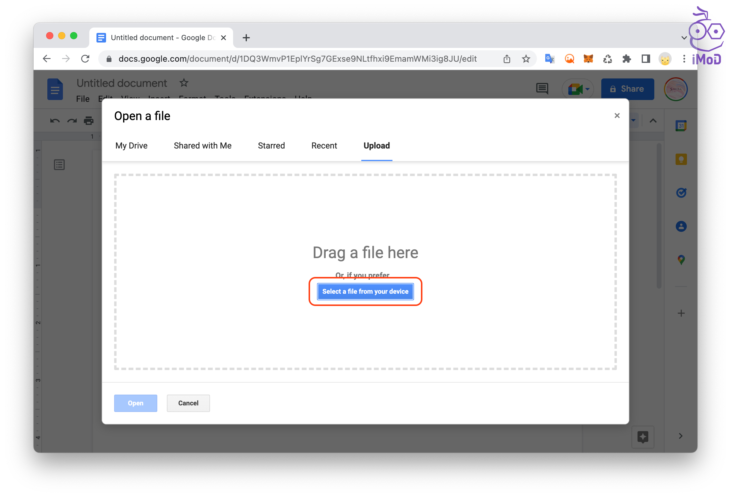 อัปโหลดไฟล์ .DOC โดย Drag & Drop หรือคลิก Select a file from your device