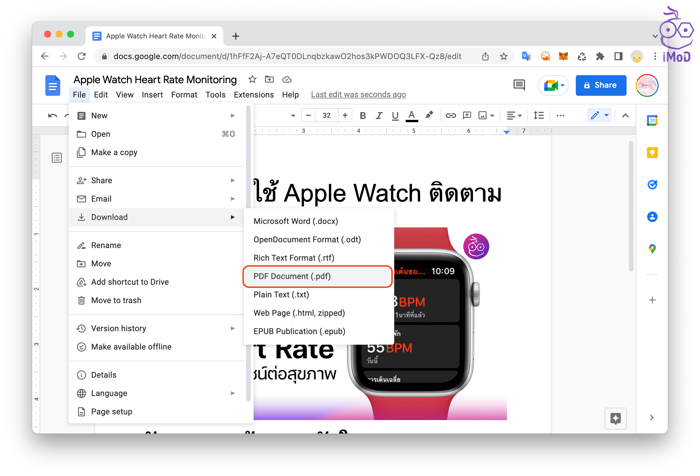 คลิกเลือก File ด้านบน > Download > PDF Document (.pdf) ไฟล์ PDF ก็จะถูกบันทึกตามโฟลเดอร์ที่เราเลือก