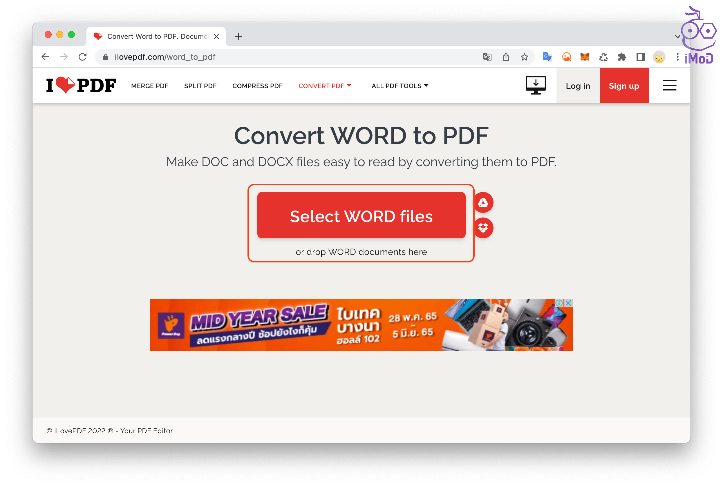 ไปที่ iLovePDF.com > Word to PDF