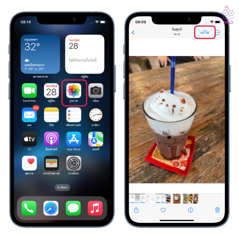 ไปที่แอปรูปภาพ (Photos) > เลือกรูปภาพที่ต้องการ แล้วแตะ แก้ไข (Edit)
