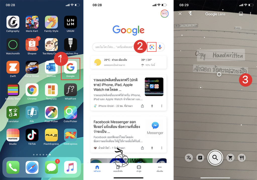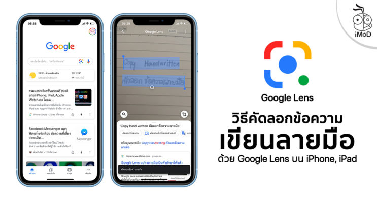 เราจะใช้ฟีเจอร์ Google Lens ที่อยู่ในแอป Google บน iPhone, iPad มาช่วยคัดลอกข้อความที่เราเขียนด้วยลายมือได้ง่ายขึ้น โดยการส่องกล้องไปยังข้อความที่เขียนแล้วคัดลอกไปวางในแอปอื่น ๆ ได้โดยไม่ต้องไปพิมพ์เอง