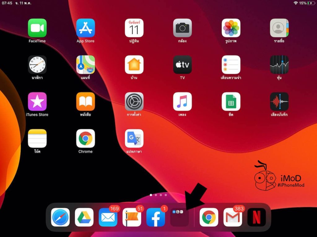 ส่วนบน iPad ถ้าอยากจะเข้าถึงแอปเพิ่มโฟลเดอร์ให้เข้าถึงแอปที่ใช้งานบ่อยก็ทำวิธีเดียวกันได้เลย