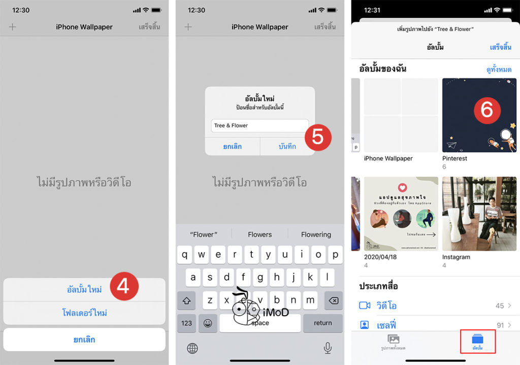 จากนั้นเลือกรูปภาพที่ต้องการ แล้วแตะ เสร็จสิ้น (Done) > แตะเสร็จสิ้น (Done) อีกครั้ง > เราก็จะการแยกอัลบั้มภายในโฟลเดอร์ดังรูปภาพ