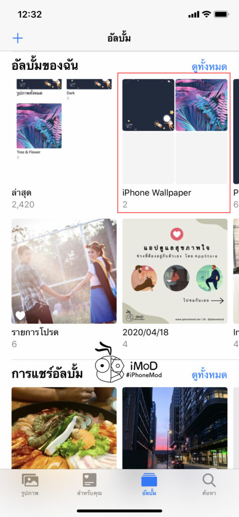 เวลาที่ดูในแถบอัลบั้มภายในแอป Photos เราก็จะเห็นโฟลเดอร์ที่มีการแสดงรูปภาพหลักแต่ละอัลบั้ม