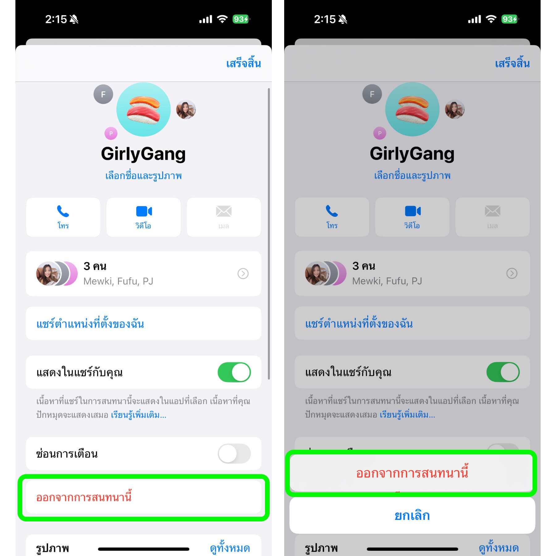 วิธีออกจากกลุ่มแชท iMessage