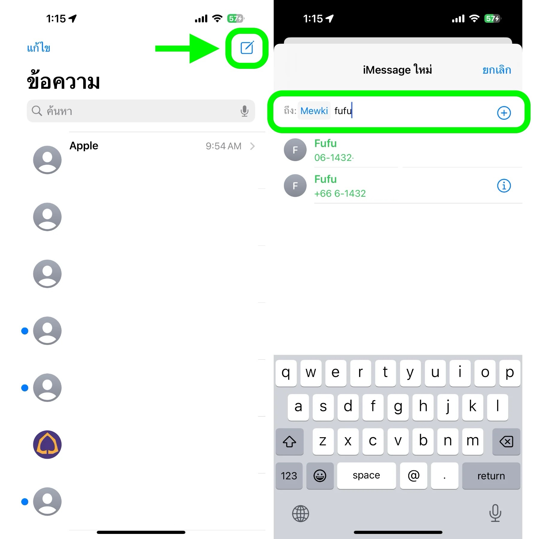 1. เปิดแอป Messages ขึ้นมา และแตะที่ไอคอน + เพื่อสร้างการสนทนาใหม่