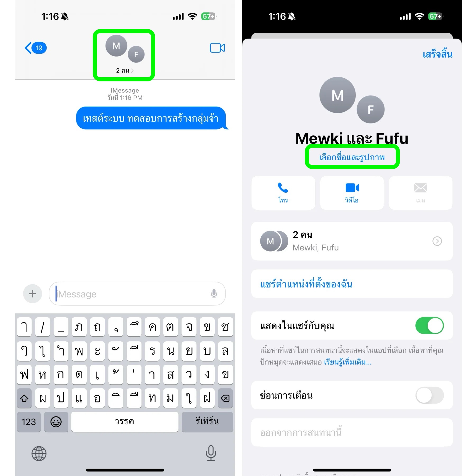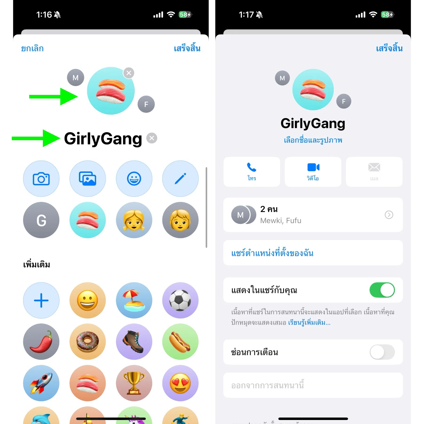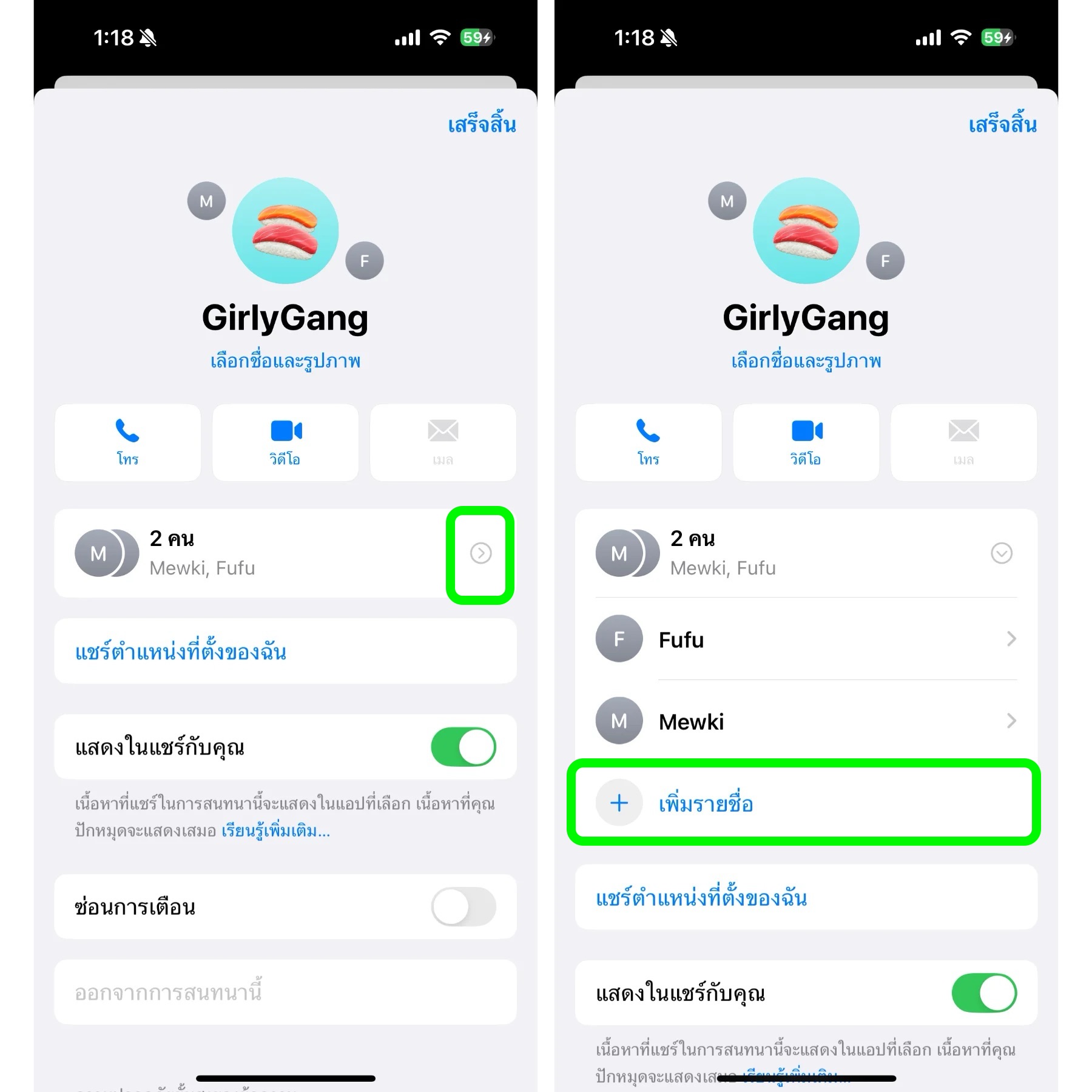วิธีเปลี่ยนชื่อและเลือกกลุ่มแชท