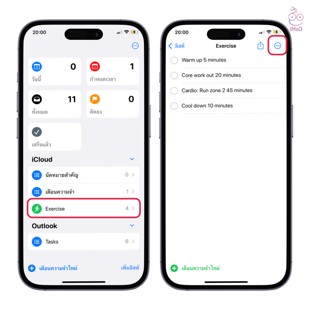 เราจะใช้ลิสต์ที่มีอยู่แล้ว นำมาสร้างเป็นแม่แบบ (Template) ดังนั้นหากยังไม่เคยมีลิสต์เตือนความจำ แนะนำให้สร้างให้เรียบร้อย เมื่อเรามีลิสต์แล้ว ให้เราแตะลิสต์ที่ต้องการ > ภายในลิสต์ก็จะมีรายการเตือนความจำที่เราบันทึกไว้ แตะไอคอน 3 จุด ด้านบน