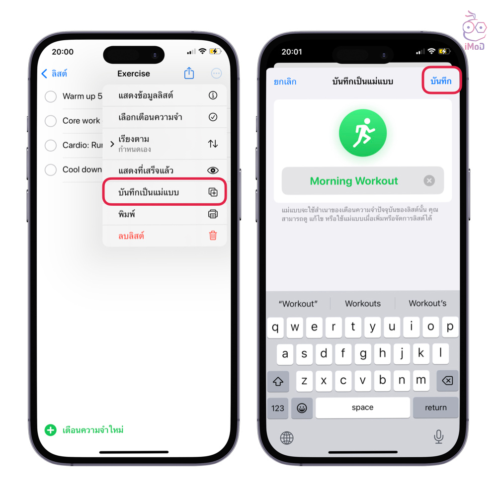 แตะ บันทึกเป็นแม่แบบ > ป้อนชื่อ แม่แบบที่ต้องการ แล้วแตะ บันทึก
