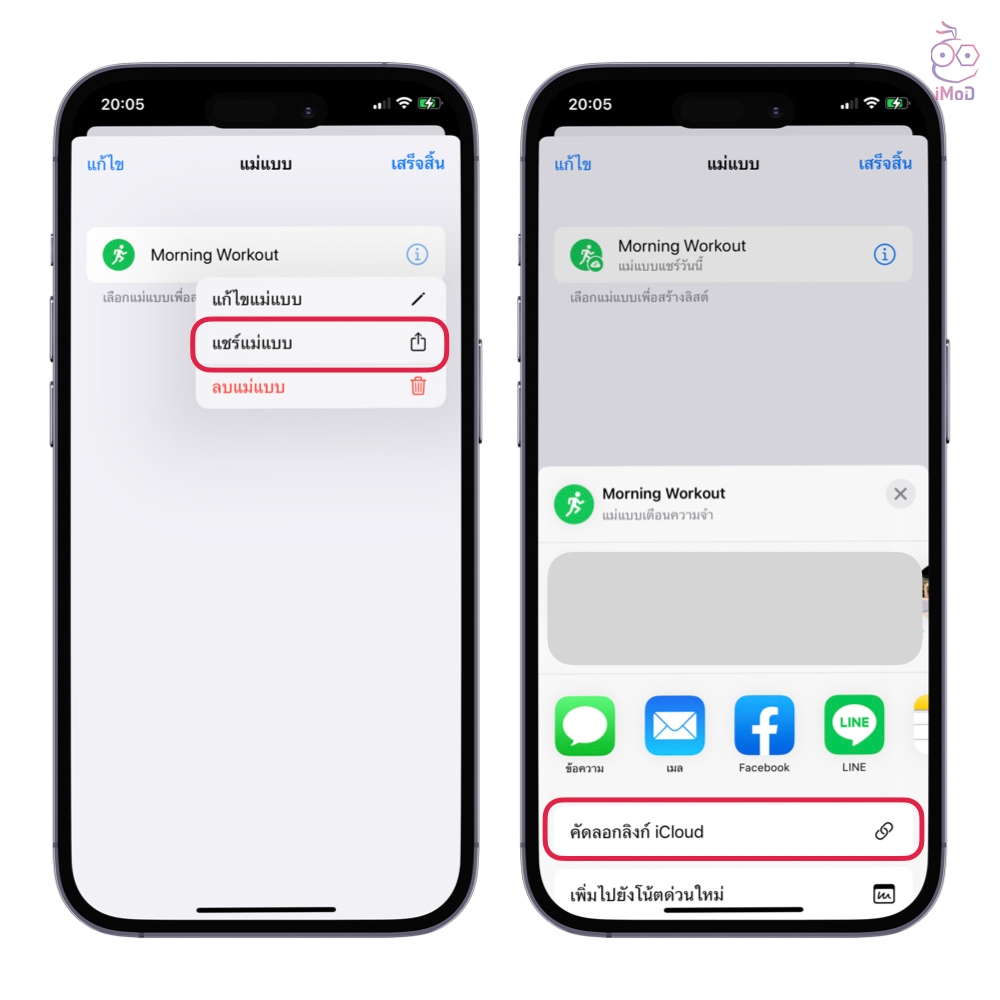 แตะ แชร์แม่แบบ (Share Template) > เลือกช่องทางการแชร์ หรือจะคัดลอกลิงก์ส่งให้ผู้อื่นก็ได้