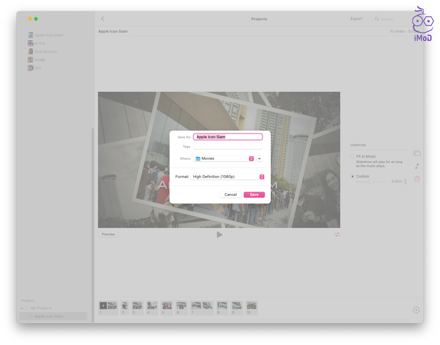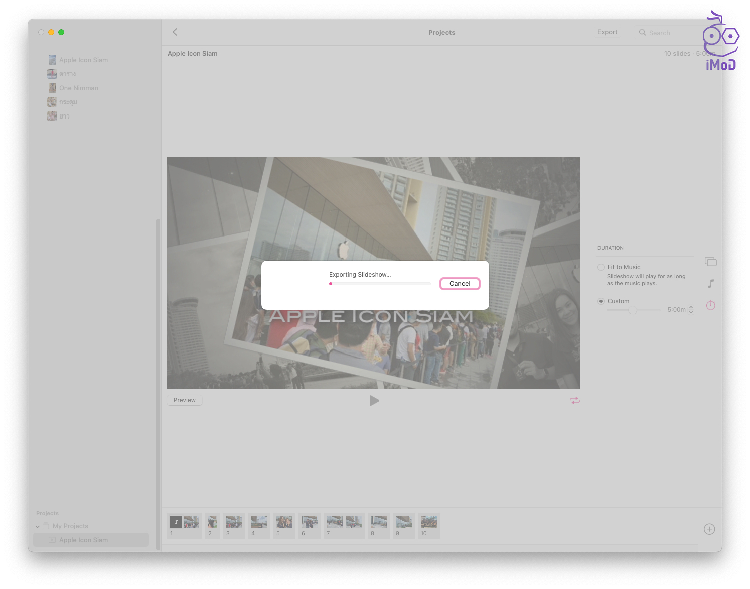 หลังจากกด Export แล้ว ก็รอให้เครื่องประมวลผลสักครู่ เมื่อ Export เสร็จแล้ว วิดีโอสไลด์โชว์ก็จะถูกบันทึกในโฟลเดอร์ในเครื่อง Mac