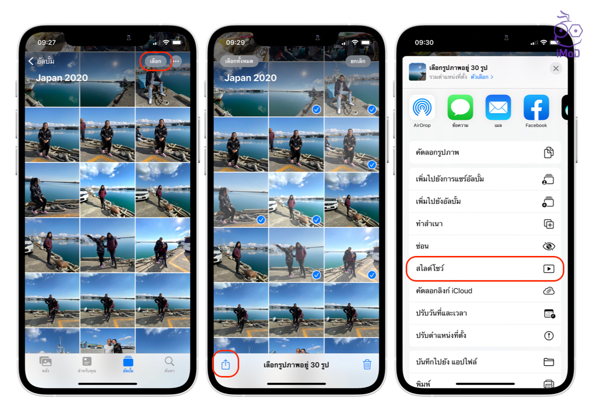 วิธีสร้างสไลด์โชว์ (Slideshow) จากรูปภาพบน iPhone, iPad