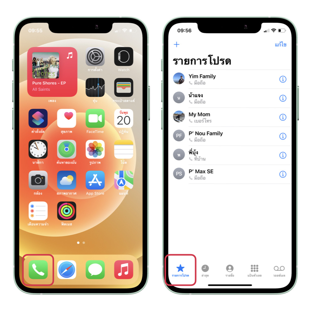 บางคนอาจจะบันทึกรายชื่อที่โทรบ่อยเป็นรายการโปรด เวลาจะโทรก็เข้าไปที่แอปโทรศัพท์ แล้วเลือกแถบรายการโปรด จากนั้นก็โทรได้เลย
