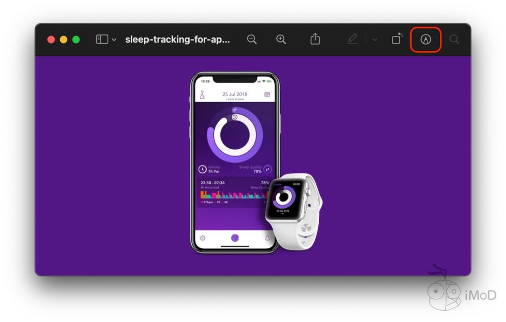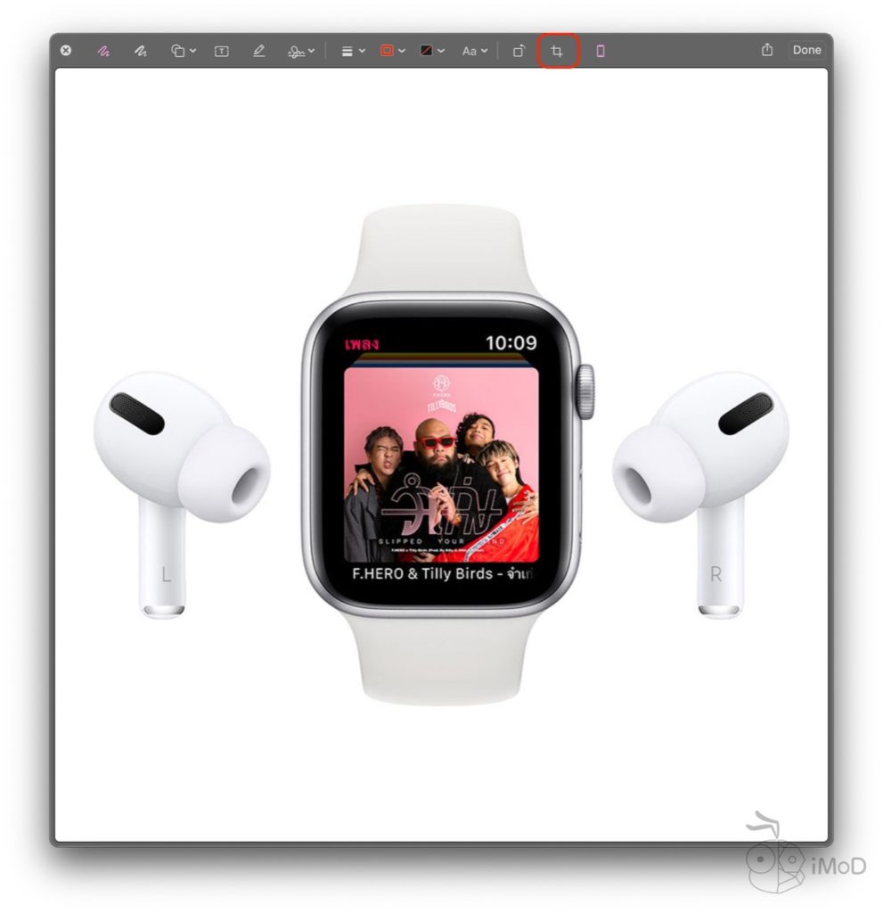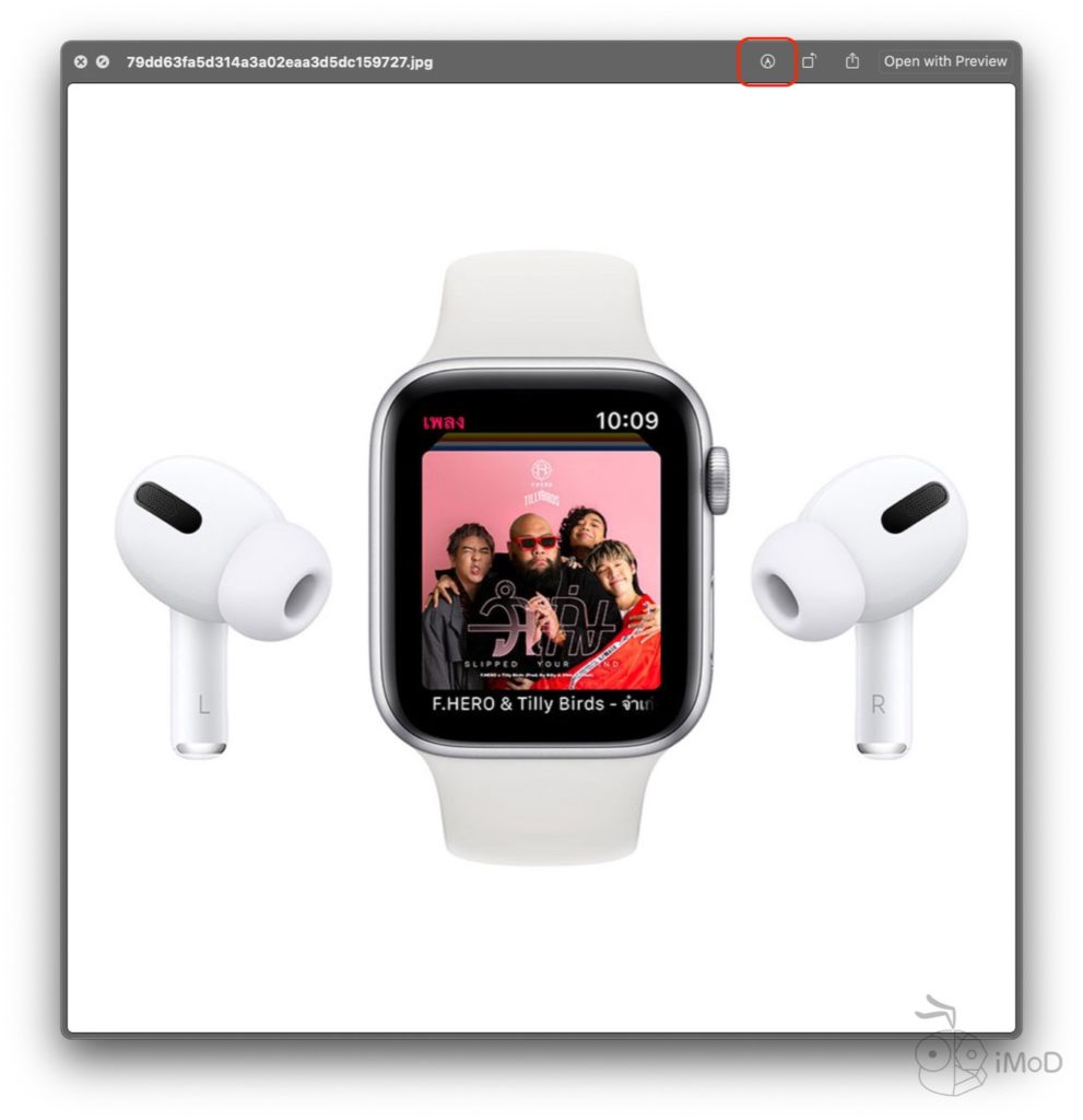 หากเราดับเบิ้ลคลิกที่รูปภาพ เพื่อเปิดในแอป Preview เพื่อดูรูปภาพ เราสามารถครอบรูปภาพได้โดยการคลิกที่ไอคอน Markup