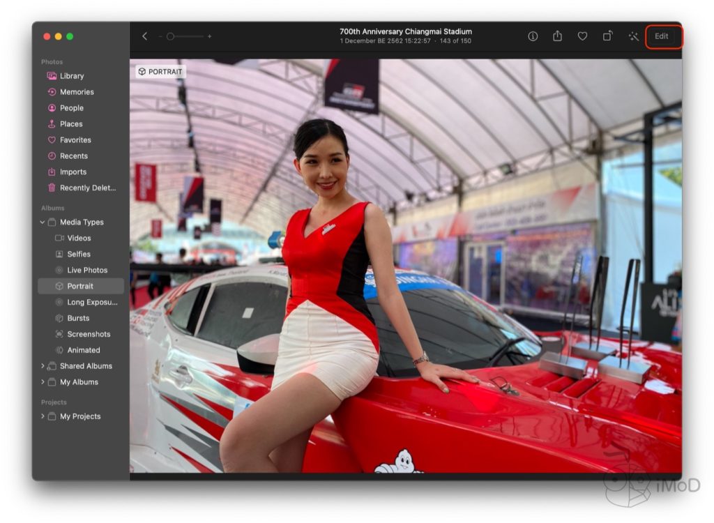 ถ้าหากเราเปิดรูปภาพในแอป Photos บน Mac เราสามารถคลิกที่ปุ่ม Edit ด้านบนมุมขวา เพื่อเรียกเครื่องมือการปรับแต่งรูปภาพขึ้นมา