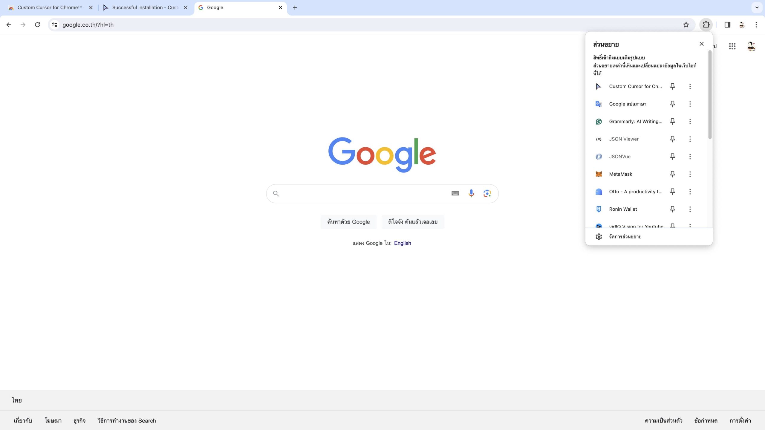 พอเพิ่มเสร็จ ให้เรากด “ส่วนขยาย” มุมบนขวา จากนั้นกด “Custom Cursor for Chrome”
