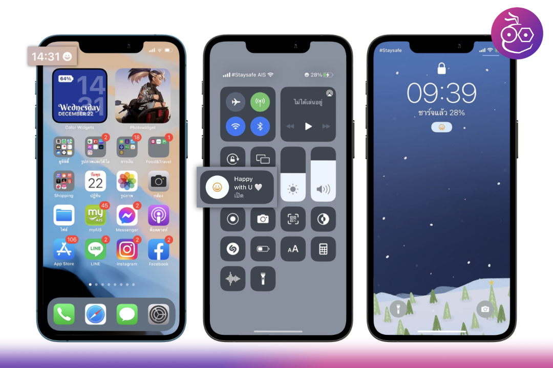 การตั้งค่าอิโมจิ/ไอคอน แสดงในแถบสถานะของ iPhone
