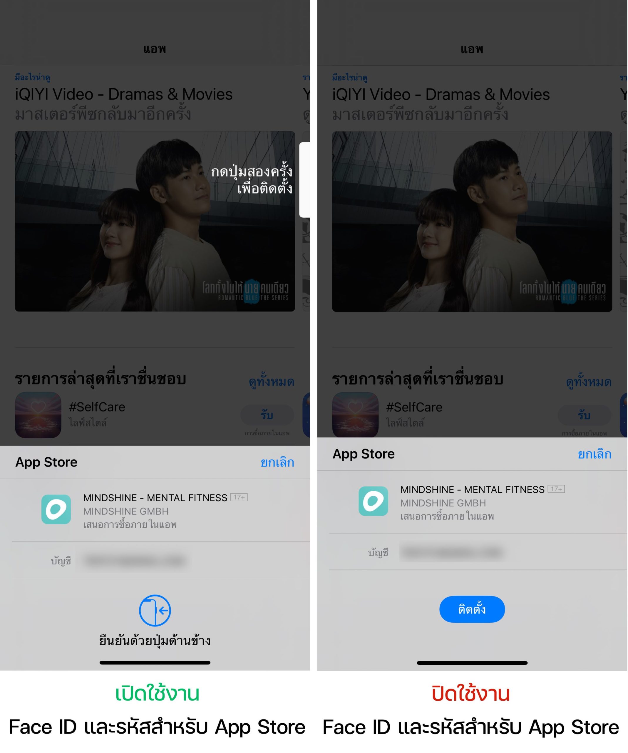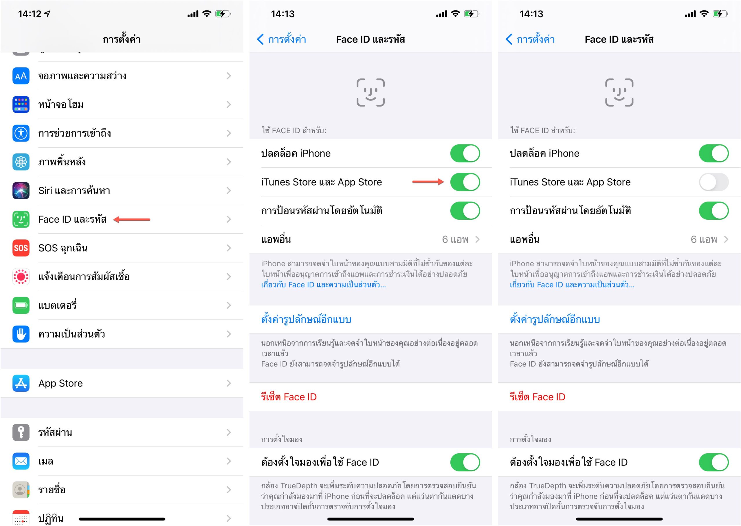 อย่างไรก็ตามผู้เขียนแนะนำว่าควรเปิด Face ID และรหัส สำหรับ “iTunes Store และ App Store” ไว้ เพื่อความปลอดภัยสูงสุดของการใช้งาน หรือไม่ก็เปลี่ยนไปใช้เป็นการกรอกรหัสผ่านแทน ชมวิธีได้ที่นี่