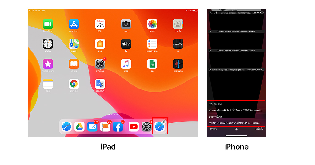 ถ้าเราล็อกอินอุปกรณ์ด้วย Apple ID เดียวกันเราก็มักจะเห็นว่าเวลาที่เราเปิดแอปบนอุปกรณ์ใดอุปกรณ์หนึ่ง แอปนั้นจะแสดงบนอุปกรณ์อื่นด้วย อย่างเช่น เปิดเว็บไซต์ในแอป Safari บน iPhone เมื่อเปิด iPad หรือ Mac แอปนั้นก็จะแสดงขึ้นมาด้วย โดยมีไอคอนเล็ก ๆ หรือข้อความที่บอกให้ทราบว่ามีการเปิดแอปที่อุปกรณ์ไหน