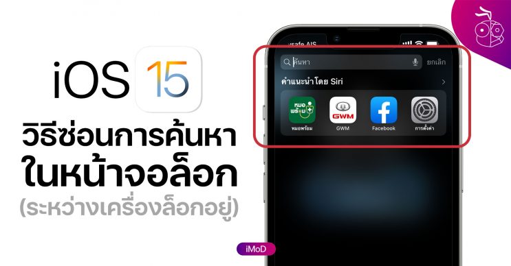 ใน iOS 15, ได้เพิ่มฟีเจอร์การเข้าถึงการค้นหาในหน้าจอล็อก ที่ผู้ใช้สามารถปัดเรียกลงเพื่อเรียกการค้นหาได้เลย แต่หลาย ๆ ครั้งผู้ใช้มักเผลอไปแตะหน้าจอเรียกใช้ฟีเจอร์นี้บ่อย ซึ่งเราสามารถตั้งค่าปิดได้ตามนี้เลย