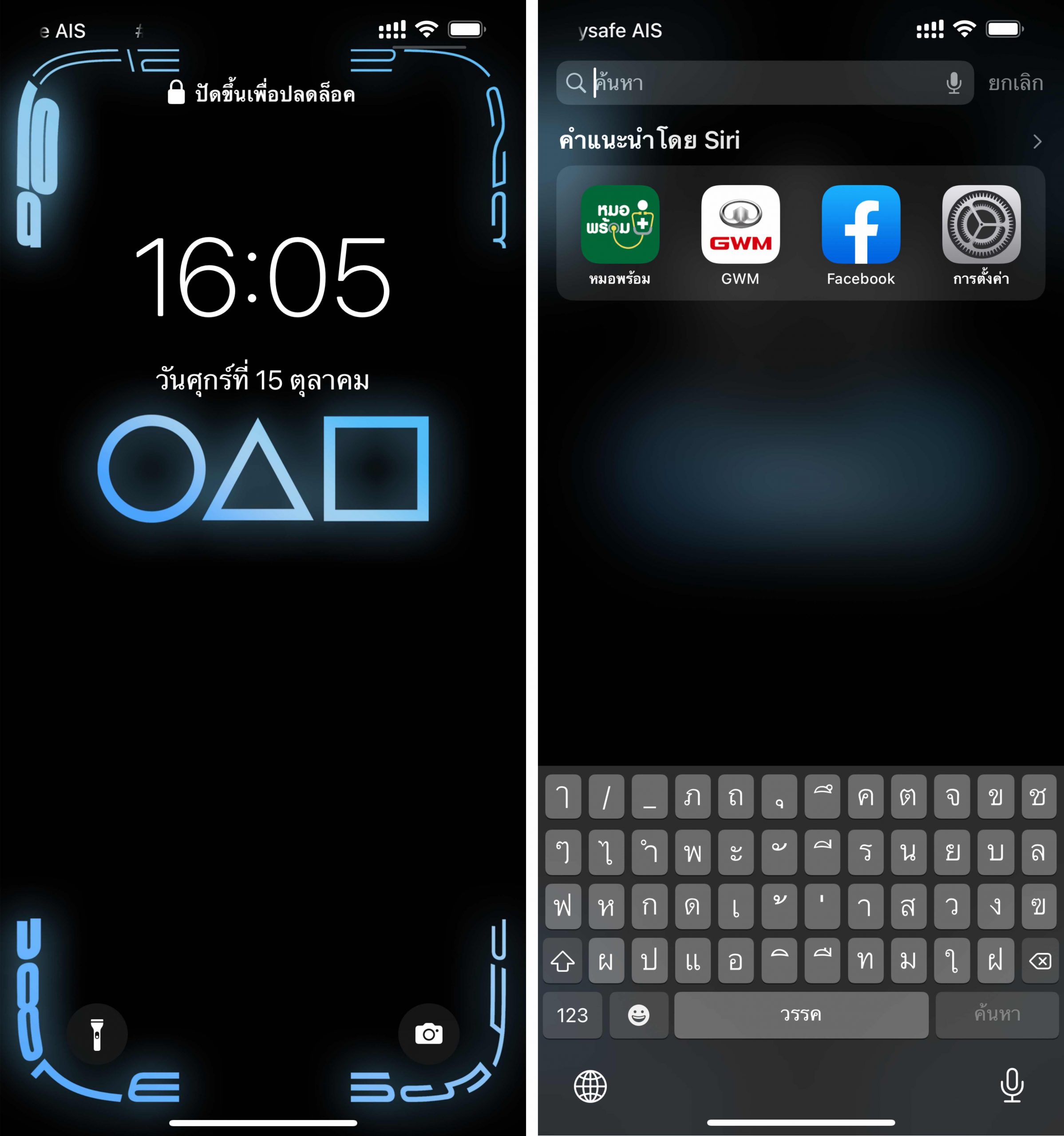 เมื่อเลื่อนปิด “มุมมองวันนี้และการค้นหา” แล้ว ในหน้าจอล็อกหากเรายังไม่ได้ปลดล็อกก็จะไม่สามารถเลื่อนเมนูการค้นหาได้ ต้องปลดล็อกด้วย Face ID, Touch ID ก่อนถึงจะเรียกเมนูการค้นหาได้