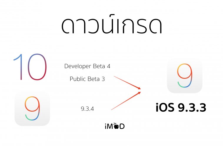 - ดาวน์เกรดจาก iOS Beta ลงมาตัวปัจจุบัน เช่น iOS 10 Beta ลงมายัง iOS 9.3.4