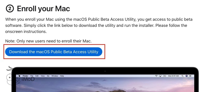 จากนั้นเลื่อนลงมาด้านล่าง คลิก Download the macOS Public Beta Access Utility