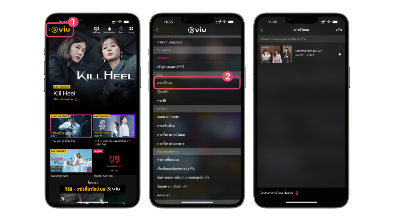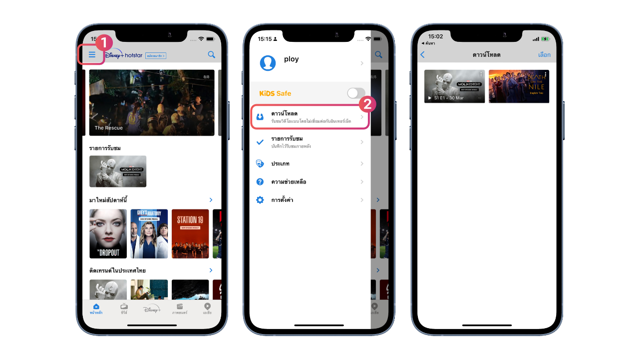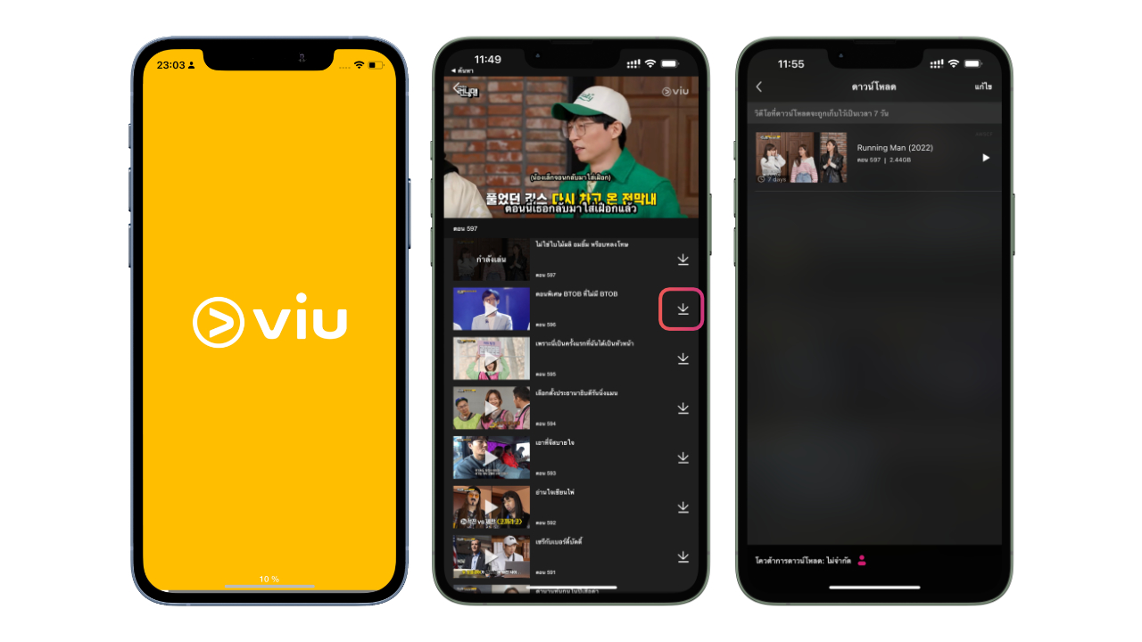 เมื่อเลือกเสร็จเรียบร้อยก็รอดาวน์โหลดจนเสร็จ ซึ่งวิดีโอก็จะถูกเก็บไปอยู่ในคลังรายการดาวน์โหลด สามารถเข้าไปดูได้โดย แตะ ขีดสามขีดมุมบนซ้าย > แตะ “ดาวน์โหลด” จากนั้นก็สามารถเลือกรับชมได้เลย