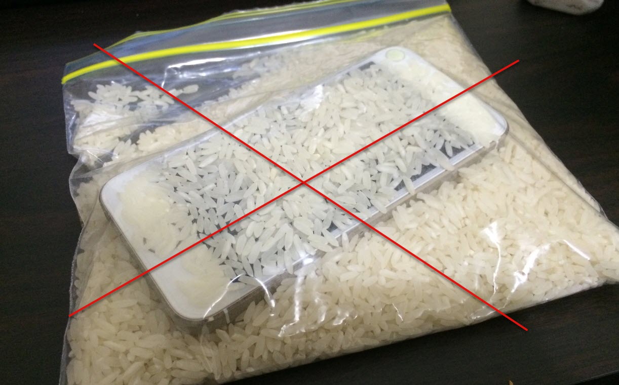 จากประสบการณ์ที่ทีมงานพบเจอมาจากผู้ที่เจอปัญหา iPhone เสียหายจากการตกน้ำ คือ การเอาไปแช่ถังข้าวสารไว้ 1 คืน แล้วเปิดเครื่องเสียบสายชาร์จใช้งาน แทนที่จะเสียค่าซ่อม ค่าทำ iPhone ให้แห้งในราคาหลักพันต้นๆ กลับต้องมาเสียค่าซ่อมแผงวงจรหลายพันบาท ดังนั้นหลักการง่ายๆ คือ หาก iPhone ตกน้ำ ให้รีบเอาเครื่องขึ้นจากน้ำ ปิดเครื่อง ทำข้างนอกให้แห้ง แล้วส่งช่างทันที