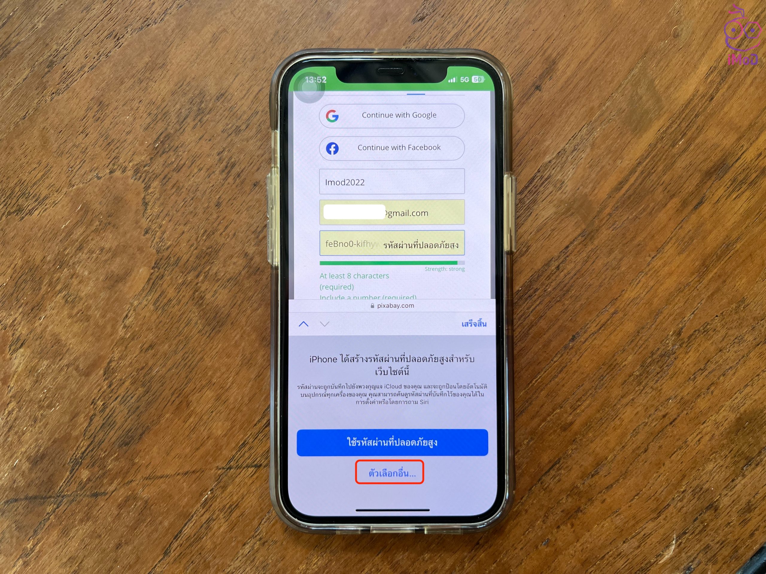 สำหรับวิธีการแก้ไขรหัสผ่านก็ง่าย ๆ เลย ในขั้นตอนที่เรากำลังสมัครสมาชิกในเว็บไซต์ต่าง ๆ ผ่าน Safari เมื่อแอปแนะนำรหัสผ่านที่ปลอดภัยสูงมาให้แล้ว ส่วนของรหัสผ่าน ให้เลือก ตัวเลือกอื่น…