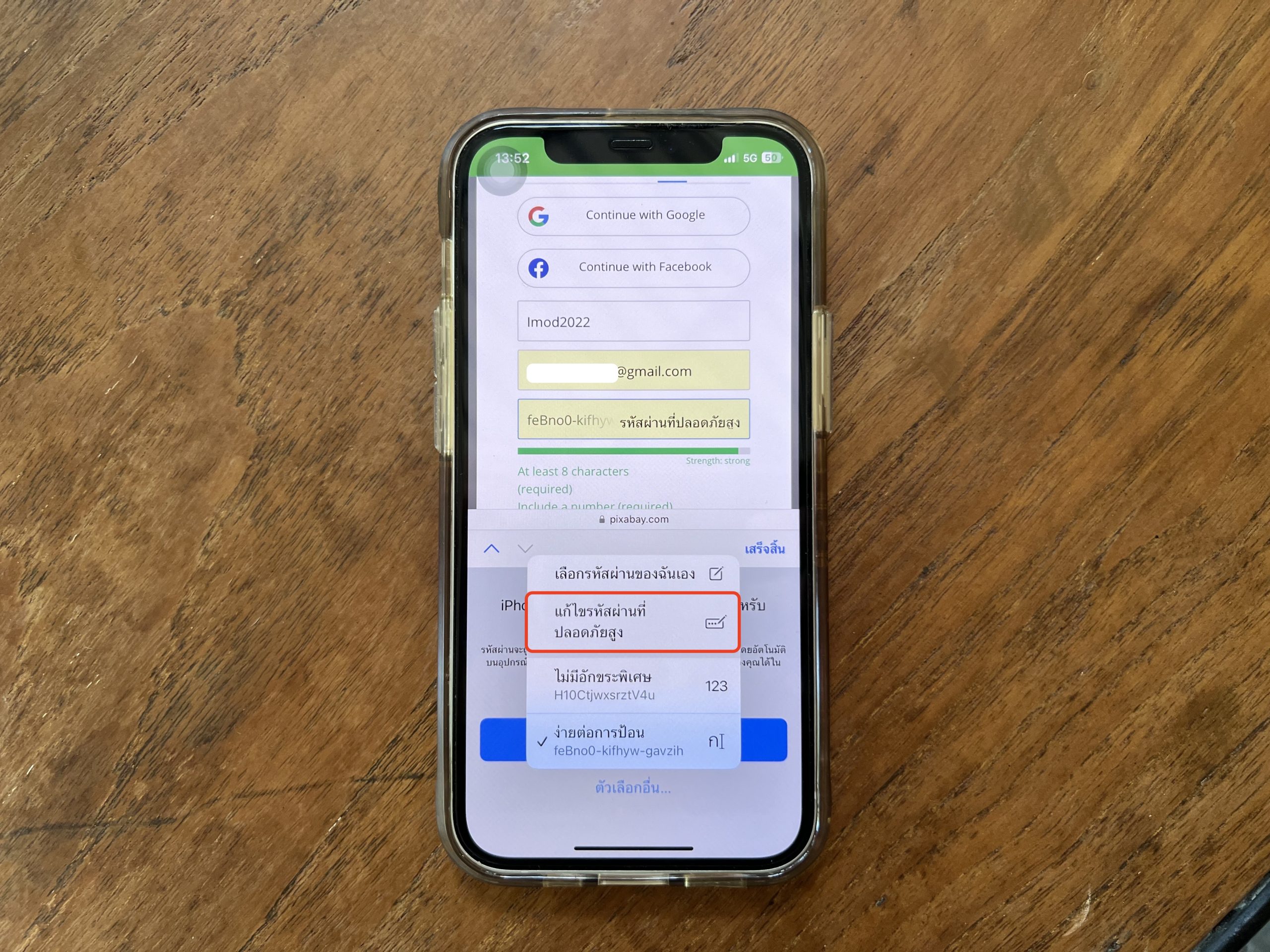 ปรับแก้ไขรหัสผ่านได้ตามต้องการหรือปรับแก้ไขให้ตรงตามข้อกำหนดของเว็บไซต์ (แนะนำให้ดูคำแนะนำของเว็บไซต์ด้วยว่ามีข้อกำหนดในการสร้างรหัสผ่านอย่างไร และรหัสผ่านที่เราแก้ไขแล้วคาดเดายากหรือปลอดภัยหรือไม่) เมื่อแก้ไขเรียบร้อยแล้วให้แตะเสร็จสิ้น