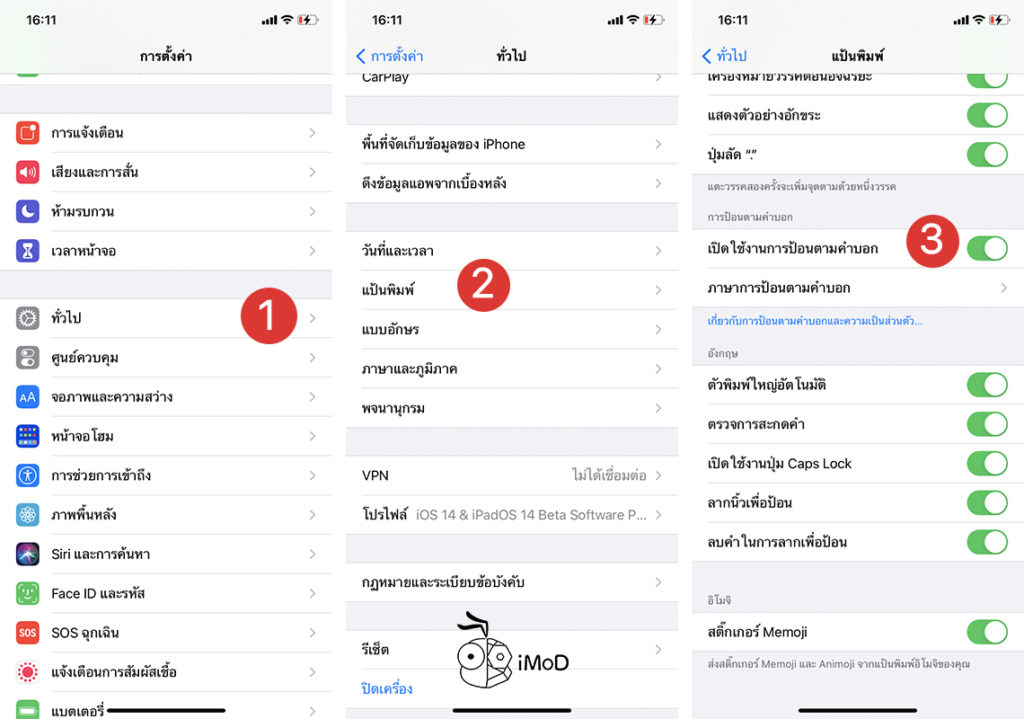 ไปที่การตั้งค่า (Settings) > แป้นพิมพ์ (Keyboard) > เปิดใช้งานการป้อนตามคำบอก (Enable Dictation)