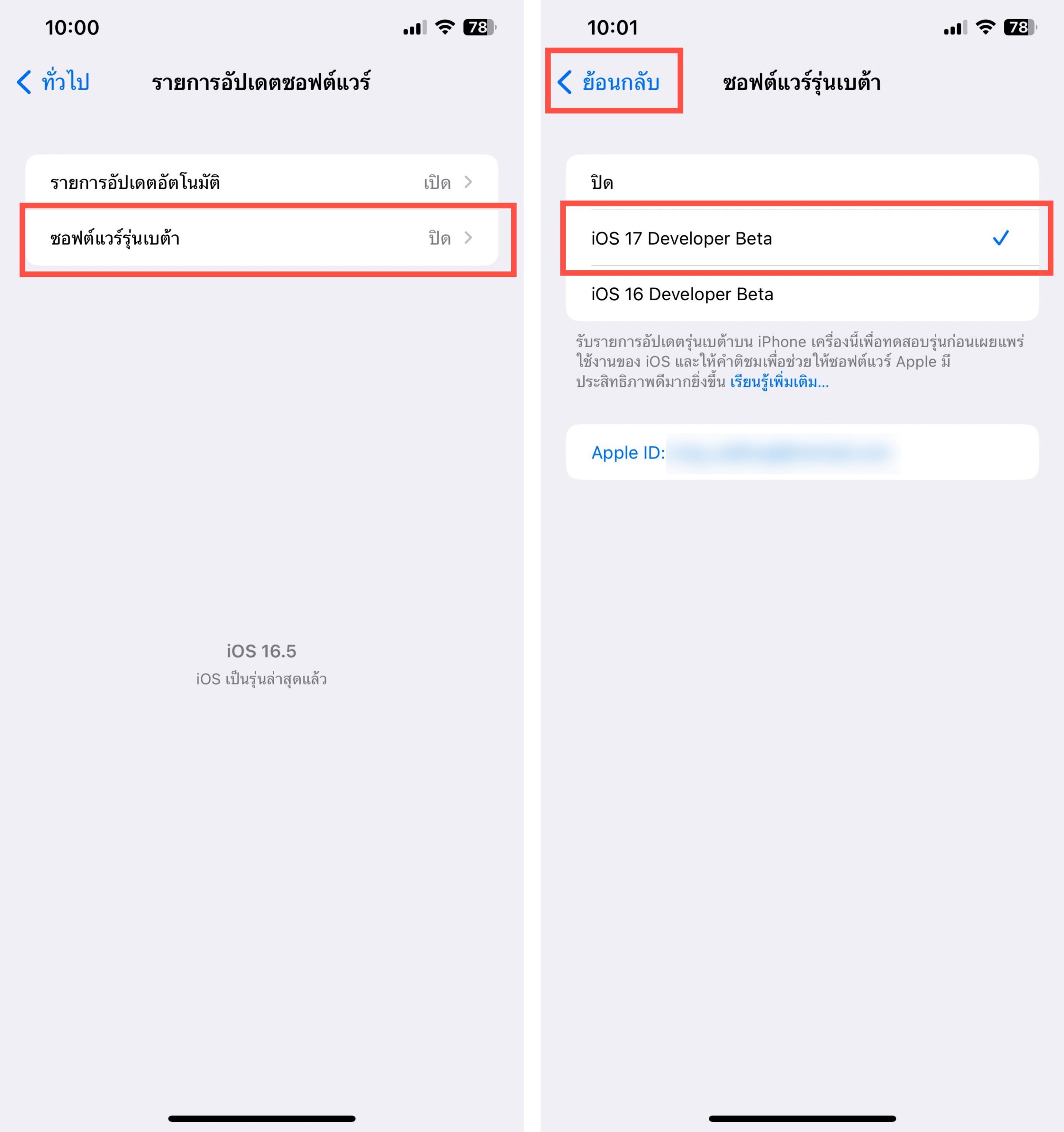 *หากไม่ต้องการอัปเดต Beta ต่อไปในอนาคต สามารถแตะปิดได้ที่ “ซอฟต์แวร์รุ่นเบต้า”