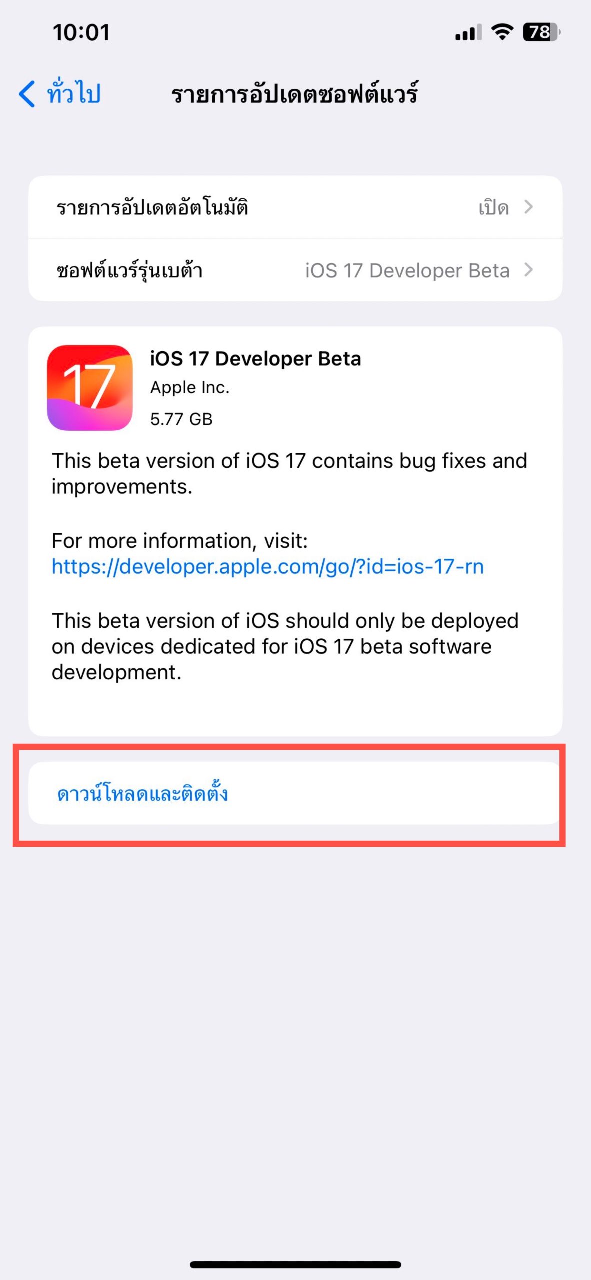 รายการอัปเดต iOS 17 Developer Beta ก็จะขึ้นมาให้อัปเดตแล้ว สามารถกดดาวน์โหลดติดตั้งได้เลย!