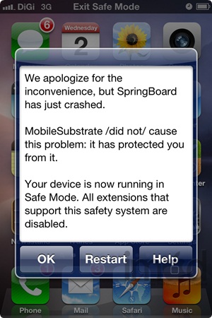 กรณีที่จะเกิดเหตุการณ์นี้เช่น ดาวน์โหลด Cydia แอปฯ ที่เวอร์ชันเก่าและยังไม่รองรับ iOS ล่าสุดหรือเวอร์ชันที่ติดตั้งลงเครื่อง ฉะนั้นอาจจะส่งผลให้บูตเข้าเครื่องไม่ได้เลย
