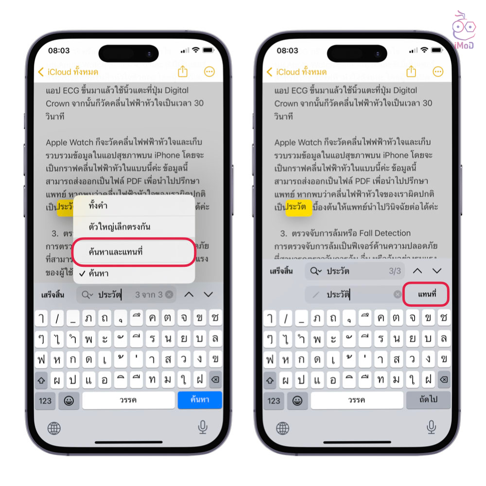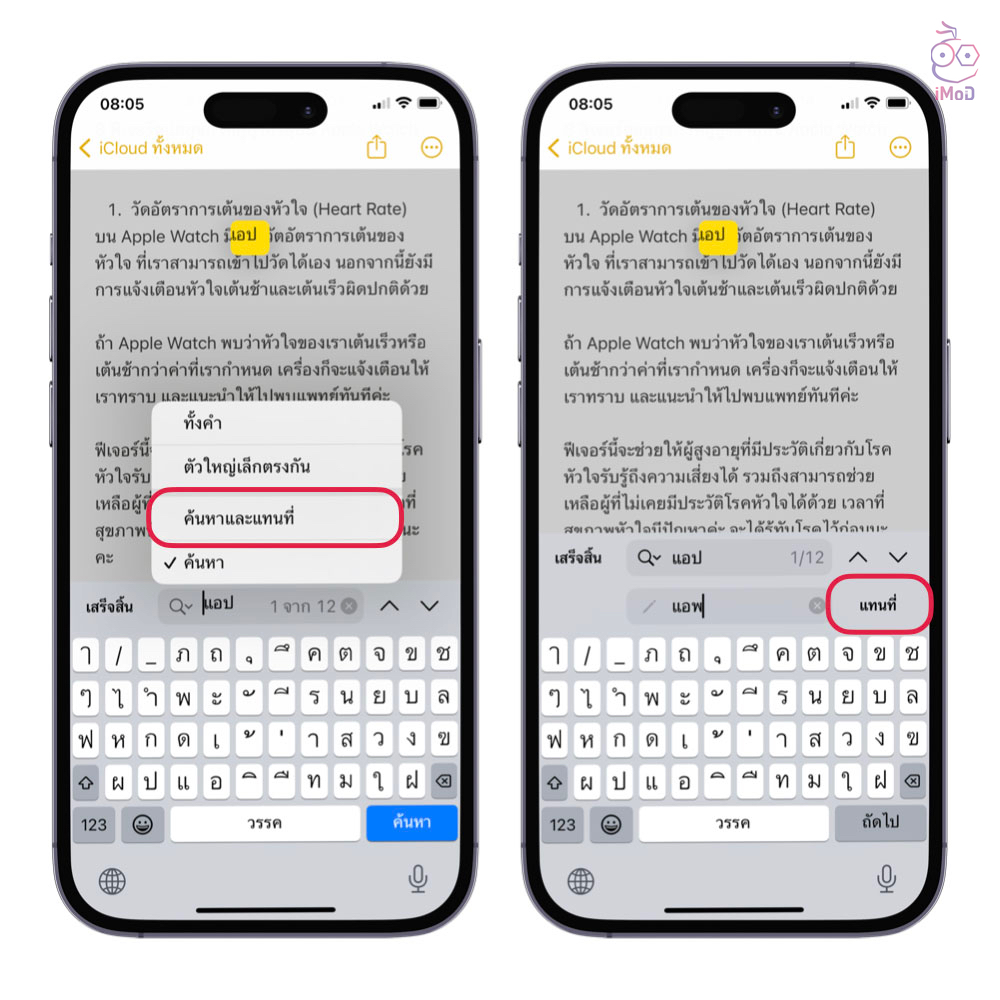 การค้นหาและแทนที่ (Find & Replace) นี้น่าจะมีประโยชน์สำหรับผู้ใช้ที่ชอบบันทึกข้อมูลไว้ในแอปโน้ต (Note) เวลาที่ต้องการค้นหาคำ อย่างเช่น คำที่ชอบพิมพ์ผิด ก็สามารถค้นหาได้ทุกตำแหน่งในโน้ต แล้วแทนที่ด้วยคำที่ถูกต้องหรือคำที่ต้องการเปลี่ยนได้เลย ลองใช้งานกันดูนะคะ