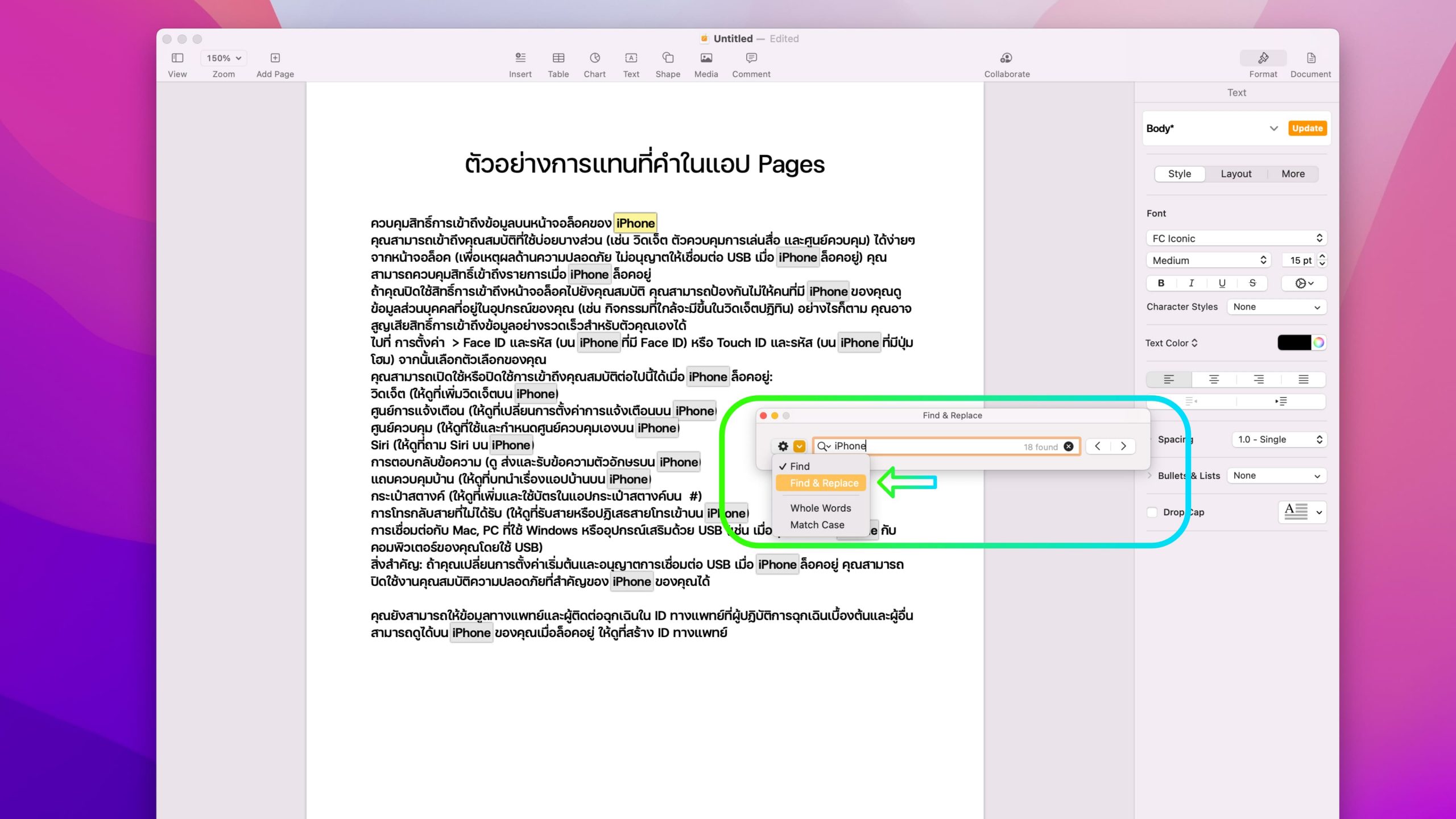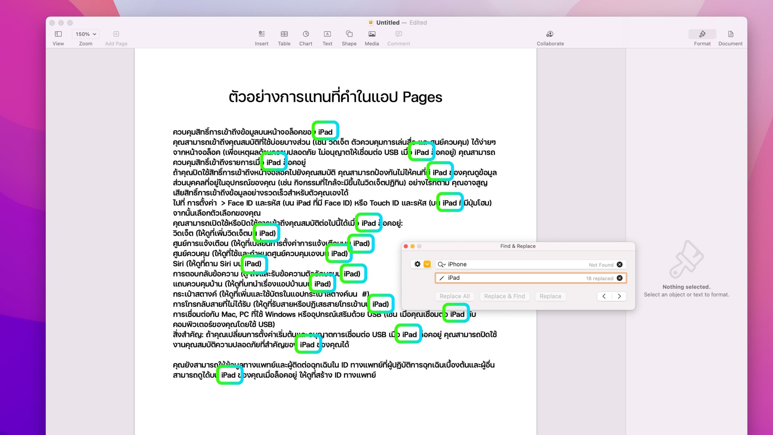 วิธีค้นหาและแทนที่คำบน Mac iPad iPhone ในแอป iWork