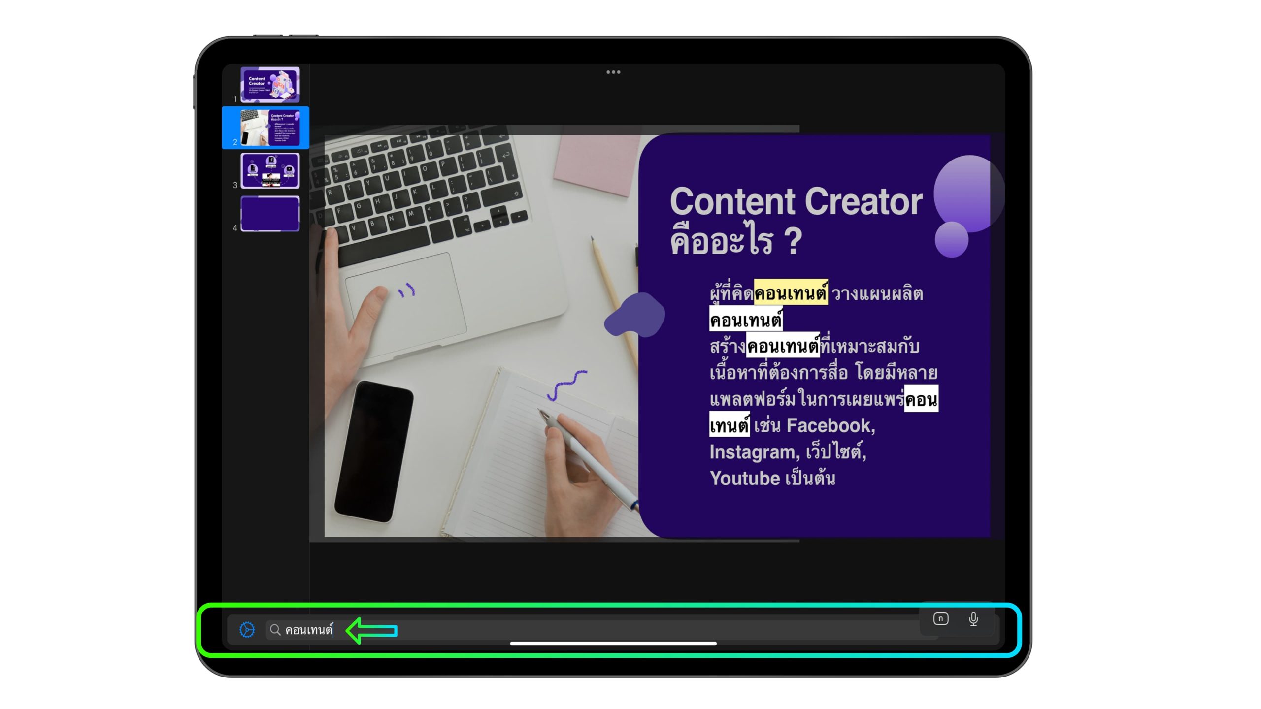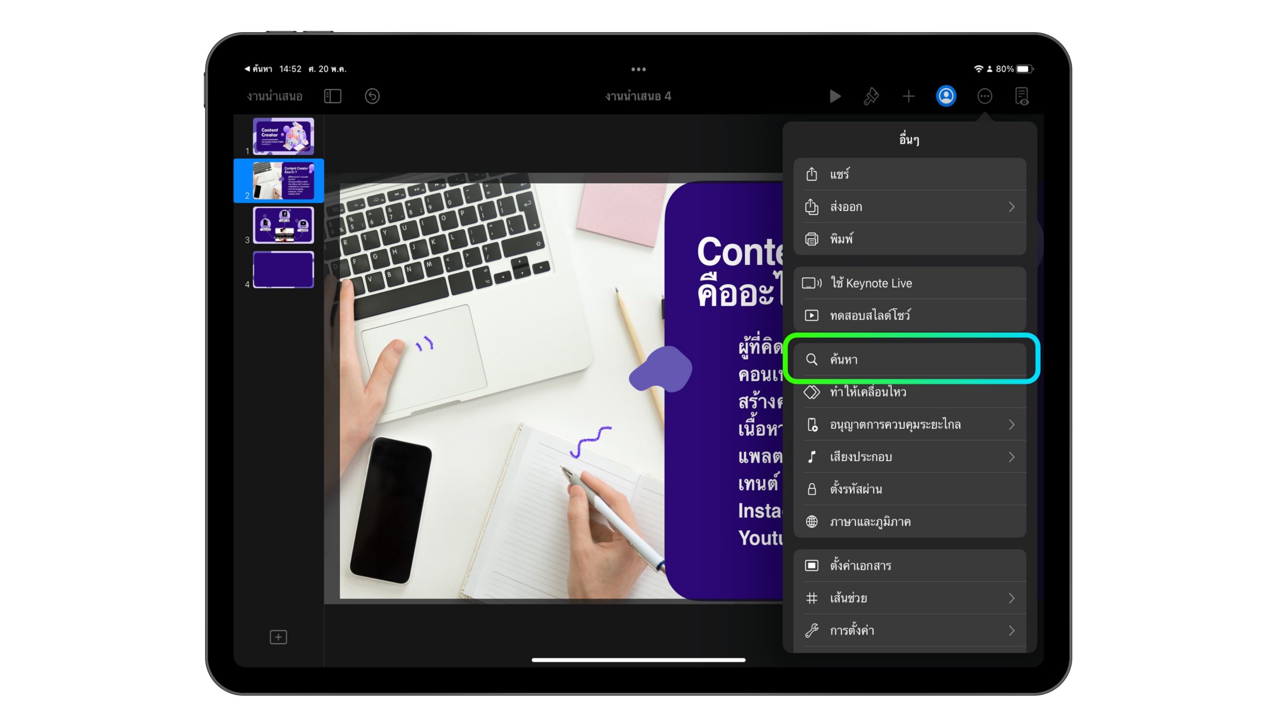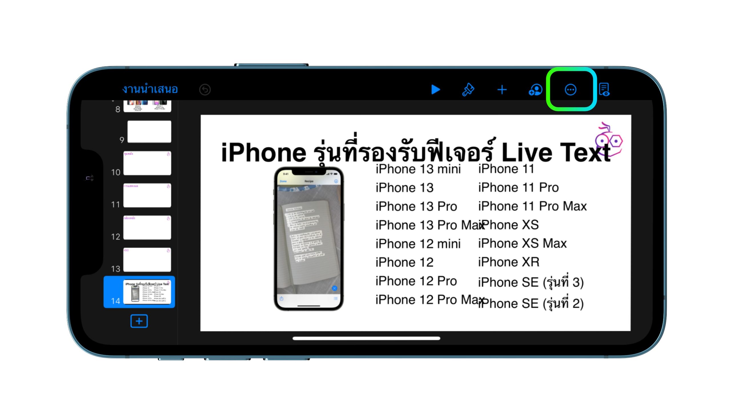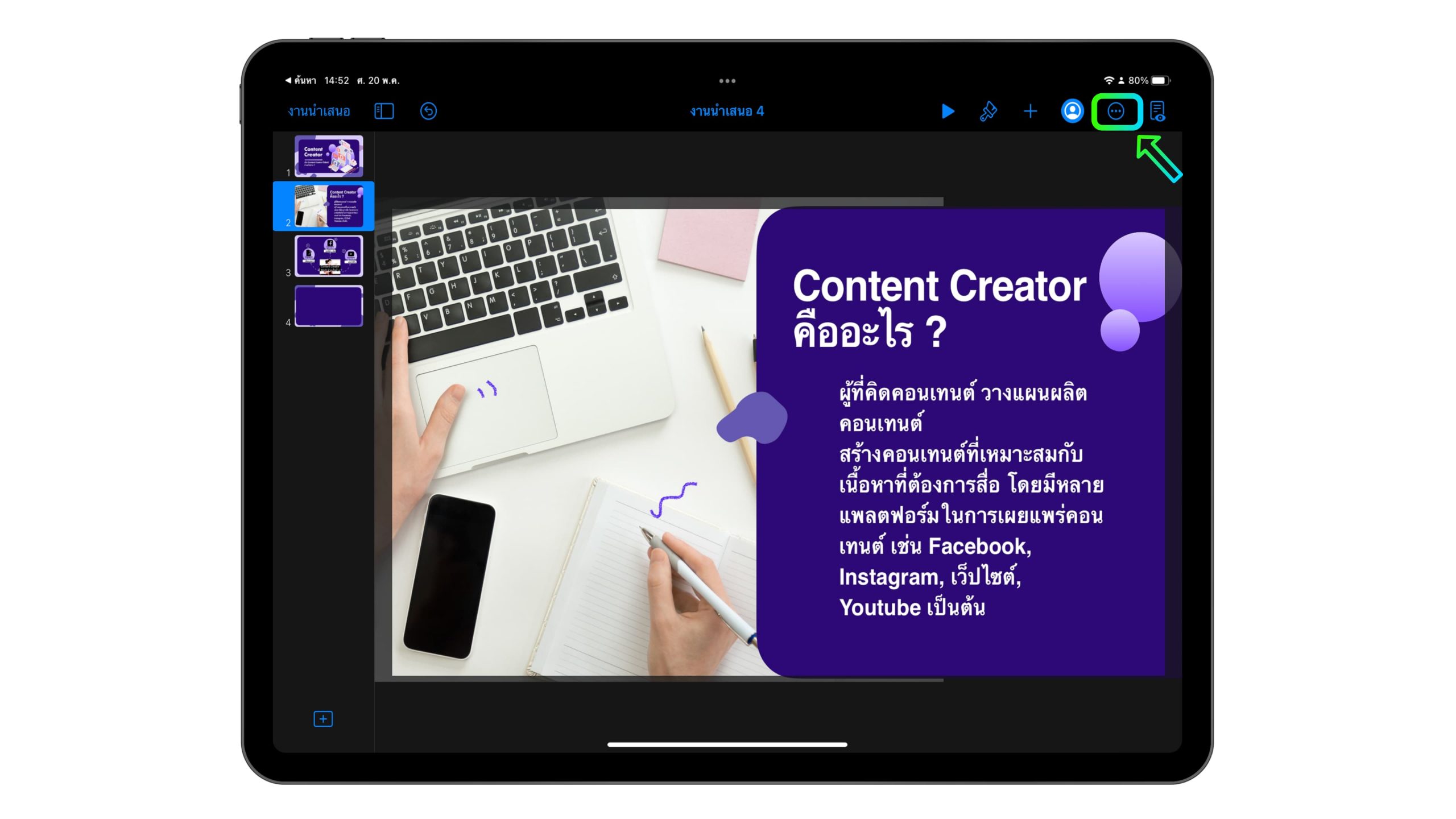 เปิดงานนำเสนอขึ้นมา แล้วแตะที่ (…)